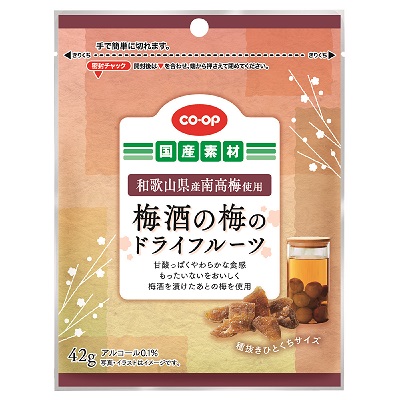 通常価格321円:賞味期限2025.12.15:アルコール0.1%。梅酒を漬けた後の梅を調味・乾燥してドライフルーツにしました。梅酒のやさしい風味が香ります。