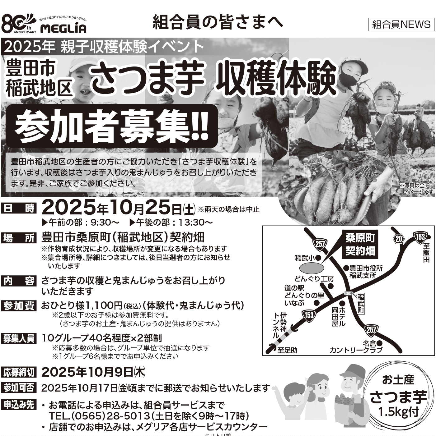 2025年親子収穫体験イベント 豊田市稲武地区 さつま芋 収穫体験 参加者募集!