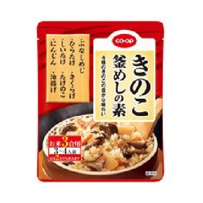 通常価格246円:賞味期限2027.11.12:ぶなしめじ、ひらたけ、きくらげ、しいたけの4種のきのこが入った炊き込みごはんの素。通常の水加減した炊飯器に入れて炊くだけで手軽に作れます。3合用