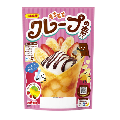 通常価格440円:賞味期限:2026.06.01:もちもちクレープの素1袋で約6個分作れます。 フライパンでおうちクレープ、生地が扱いやすく簡単に作れます。