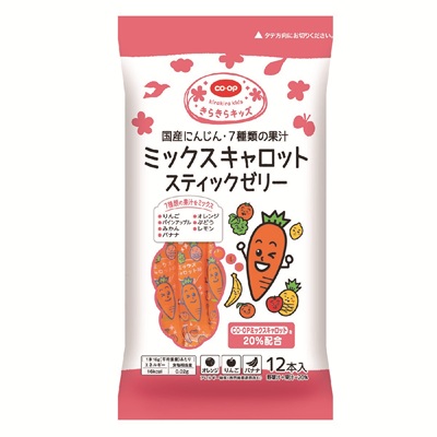 通常価格246円:賞味期限2026.07.08:生協で長年人気のあるミックスキャロットを使用しています。お子様でも開けやすく、食べやすいスティック型のゼリーです。