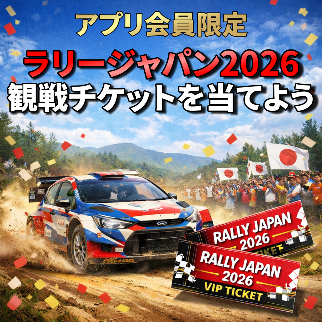 メグリアアプリ会員様限定ラリージャパン2026観戦チケットが当たる抽選会を開催中